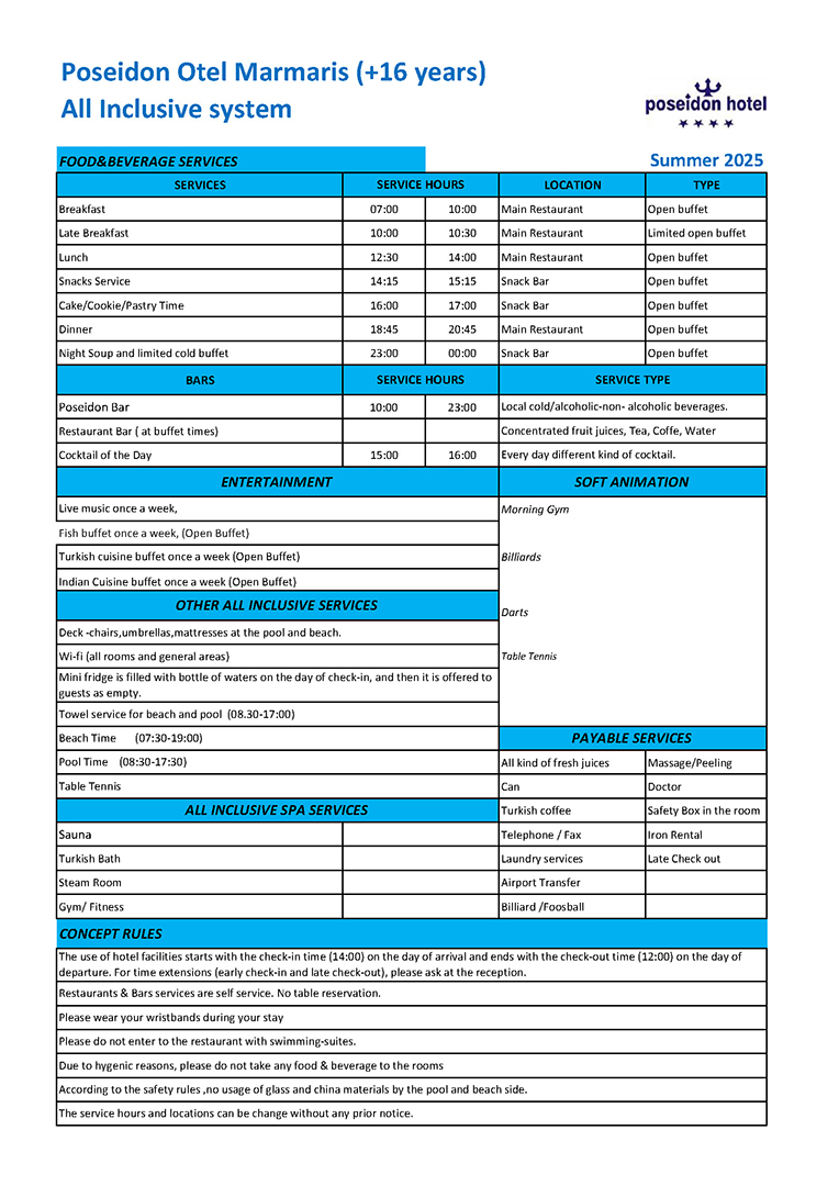 Mit Angeboten wie Hallenbäder und Swimmingpools , Dampfbad und Sauna und das traditionelle türkische Bad, die Sie für Ihre Körperpflege vorbereiten, sowie persönliche Gästebetreuung bietet Poseidon Hotel den Komfort, den Sie von einem Urlaub erwarten.